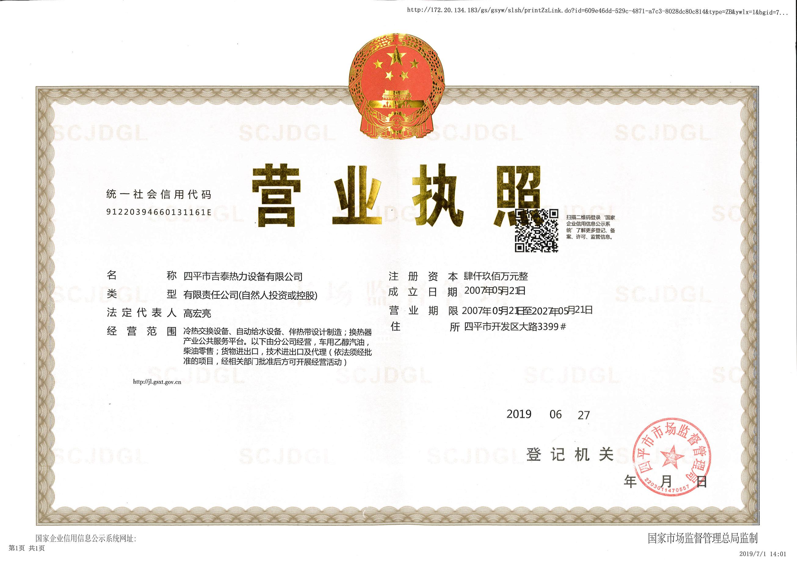 四平市吉泰热力装备无限公司始建于1996年,座落在天下卫生园林都会,具有“中国换热器基地”佳誉的四平市,公司具有薄弱的手艺气力和人材上风,国际出产装备,完美的检测手腕,是吉林省集设想、开辟、出产运营于一体的换热装备出产企业。